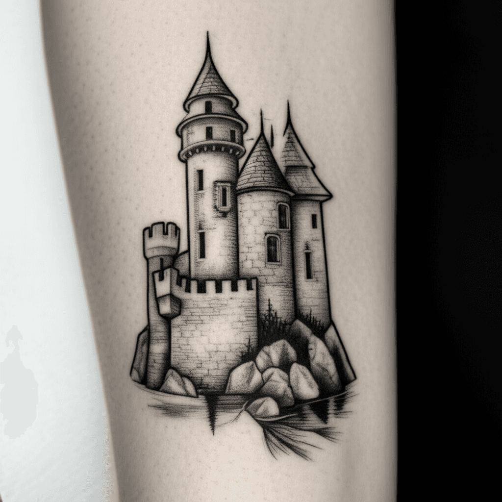 色々デザインを考えていたら、pinterestでこの細線で描いた城の図面みたいなのが目に留まって。 そこからインスパイアされてます。 シンプルだけど、細かい所まで丁寧に描かれてます。 自分の好きなものを、ずっと肌に刻んでおきたくて決めました。